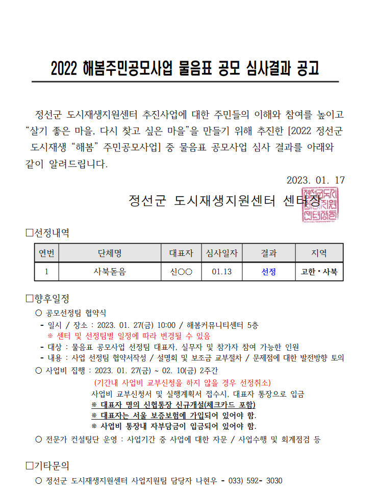 | [공시·공고] 2022 해봄주민공모사업(느낌표) 2차 선정결과 공고 (0) | 2022.10.06 |