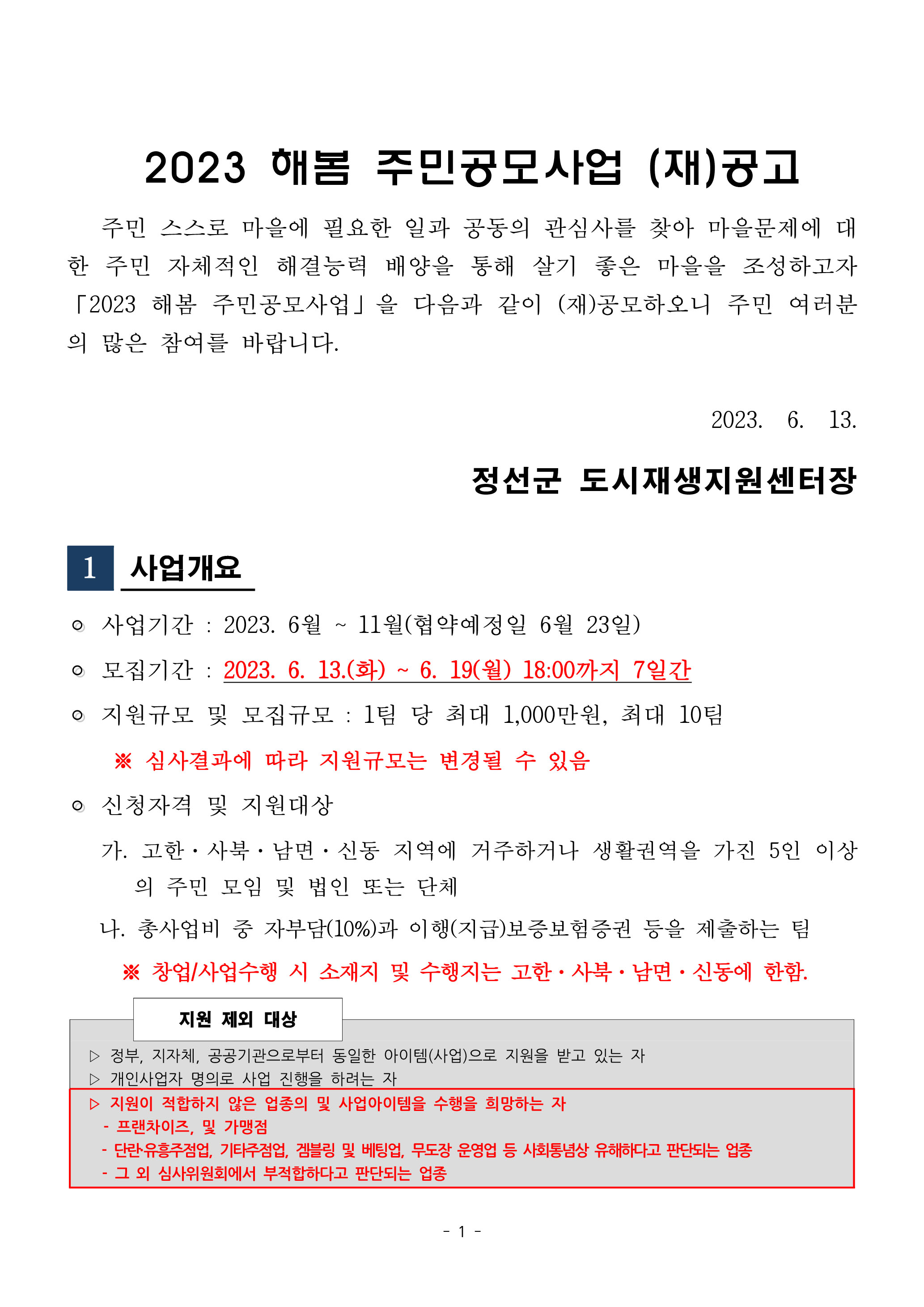 | [공시·공고] 2023년 "해봄"주민공모사업 공고문 및 신청서 (0) | 2023.05.22 |