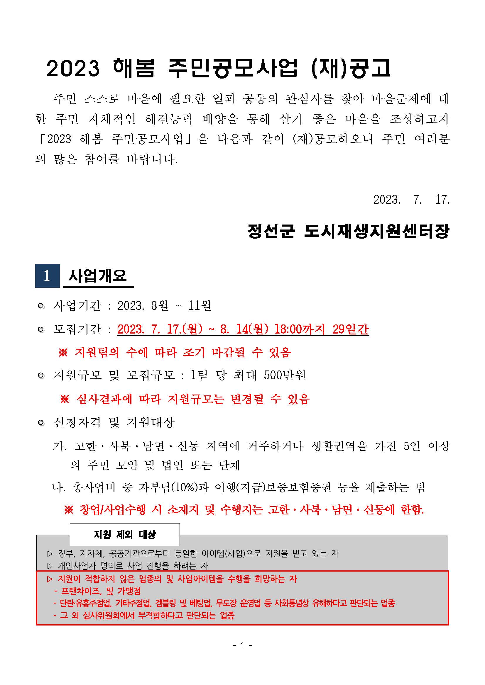 | [공고] 2023 해봄 주민공모사업 재공고 심사결과 공고 (0) | 2023.09.11 |