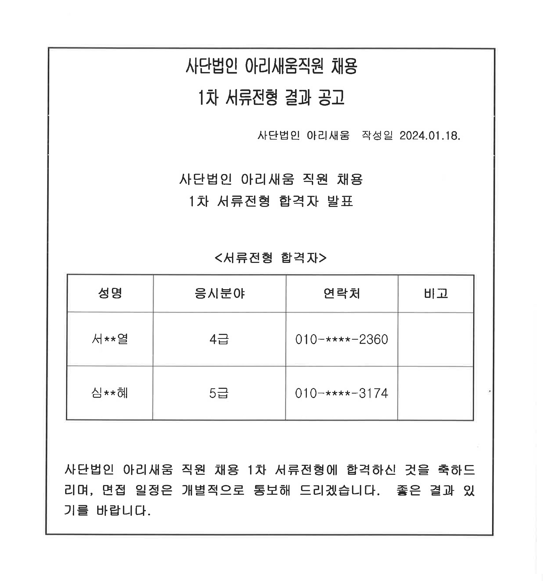 | [공시·공고] 사단법인 아리새움 직원 공개 채용 공고 (0) | 2024.01.09 |