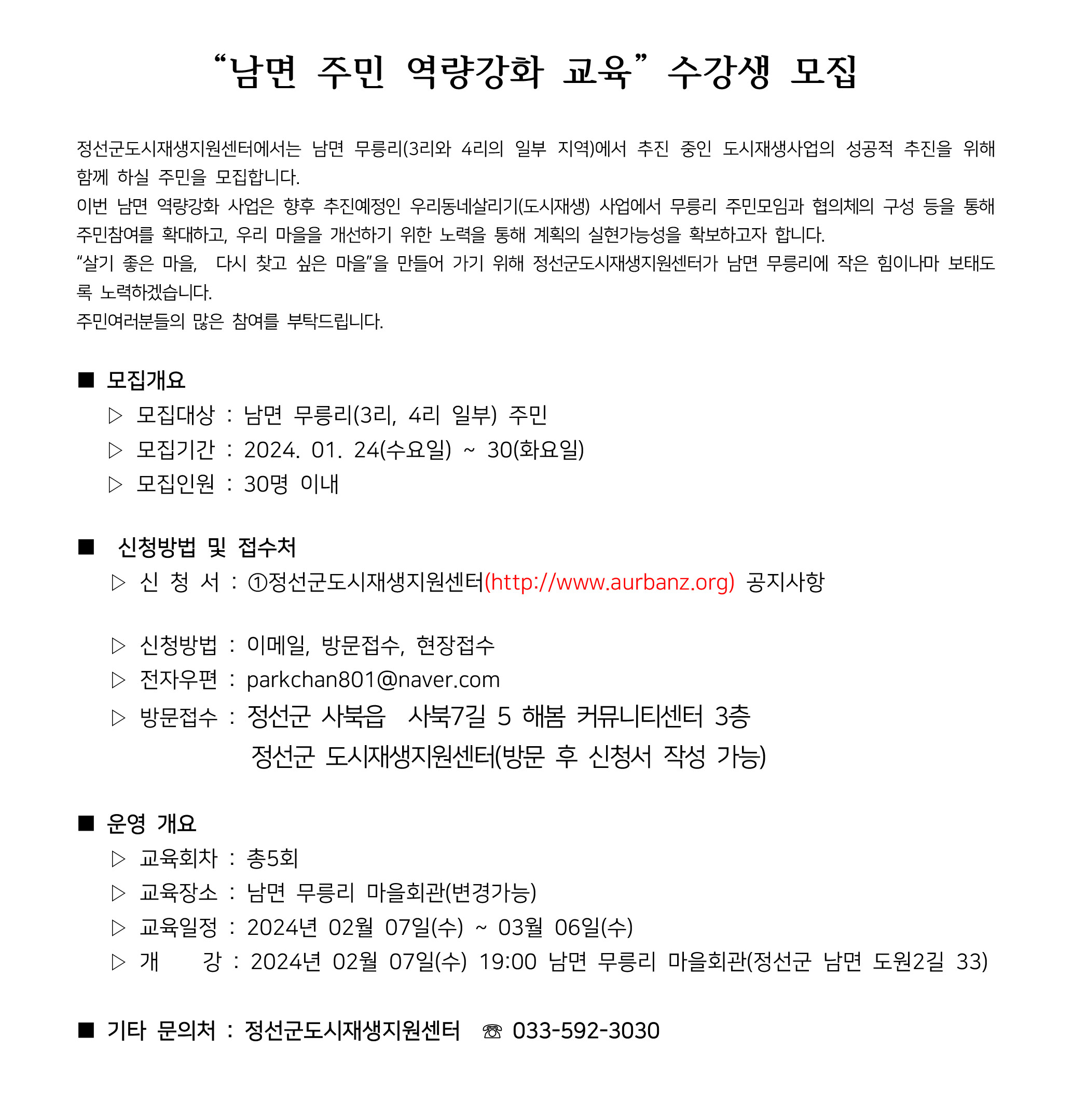 | [행사] 국민고향정선 청년학교 나비캠퍼스 성과공유 졸업식 & 청년활동공간 개관식 안내 (0) | 2024.01.22 |