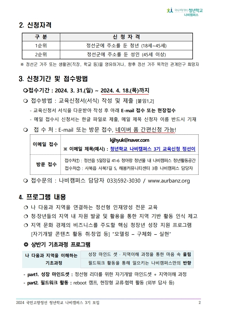 관련문의 : 나비캠퍼스 담당자 033)592-3030