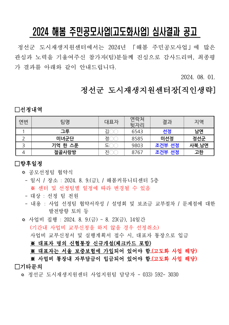 | [공시·공고] 2024 해봄 주민공모사업(초기화사업 2차) 심사결과 공고 (0) | 2024.06.25 |
