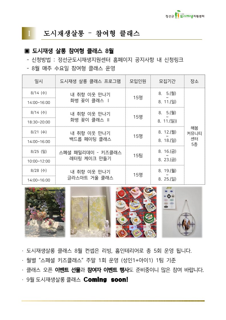 ※ 참여형 클래스 신청은 모집기간에 맞춰 별도 공지 예정입니다. 일자에 맞춰 홈페이지 공지사항 참고바랍니다.