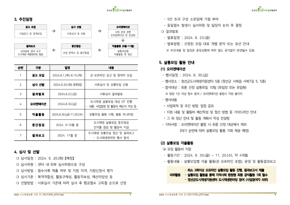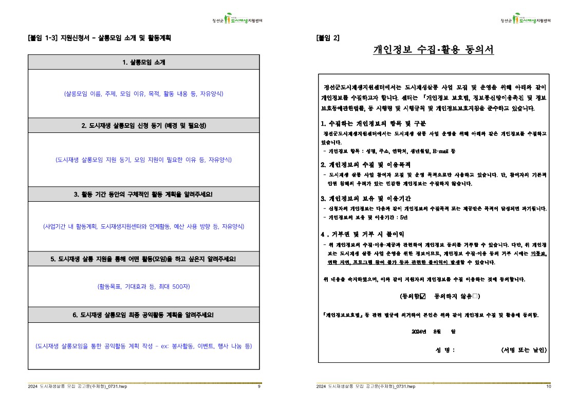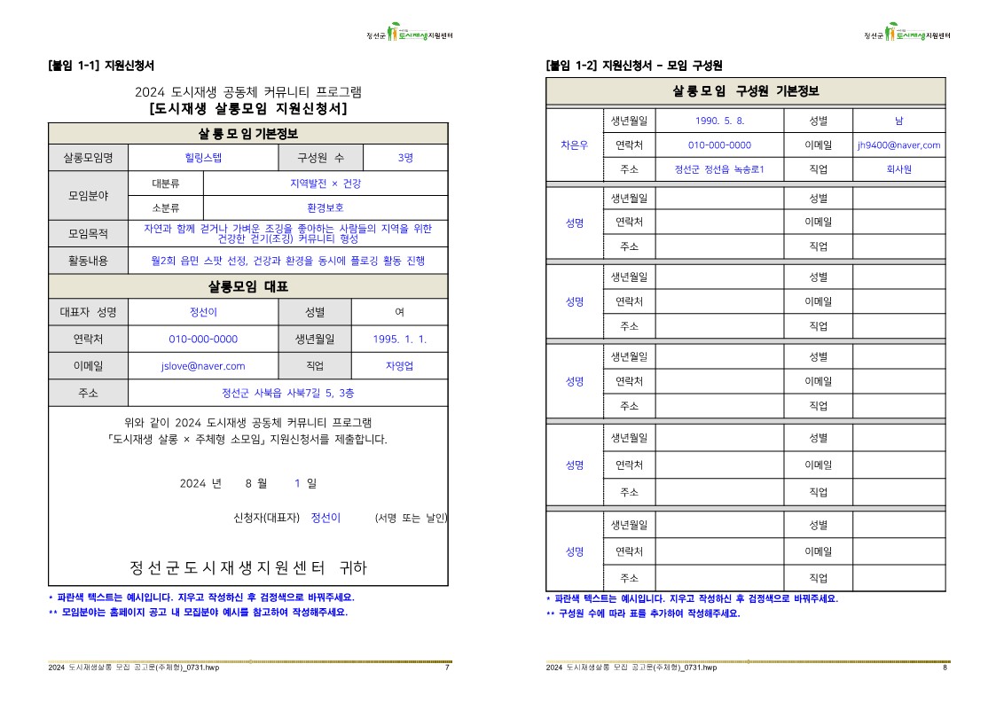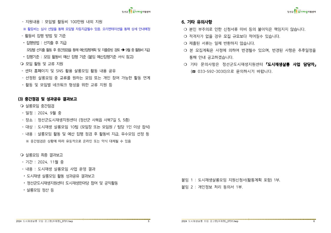 - 방문접수: 정선군도시재생지원센터 (정선군 사북읍 사북7길5, 3층) 방문접수시 서류검토 해드림!