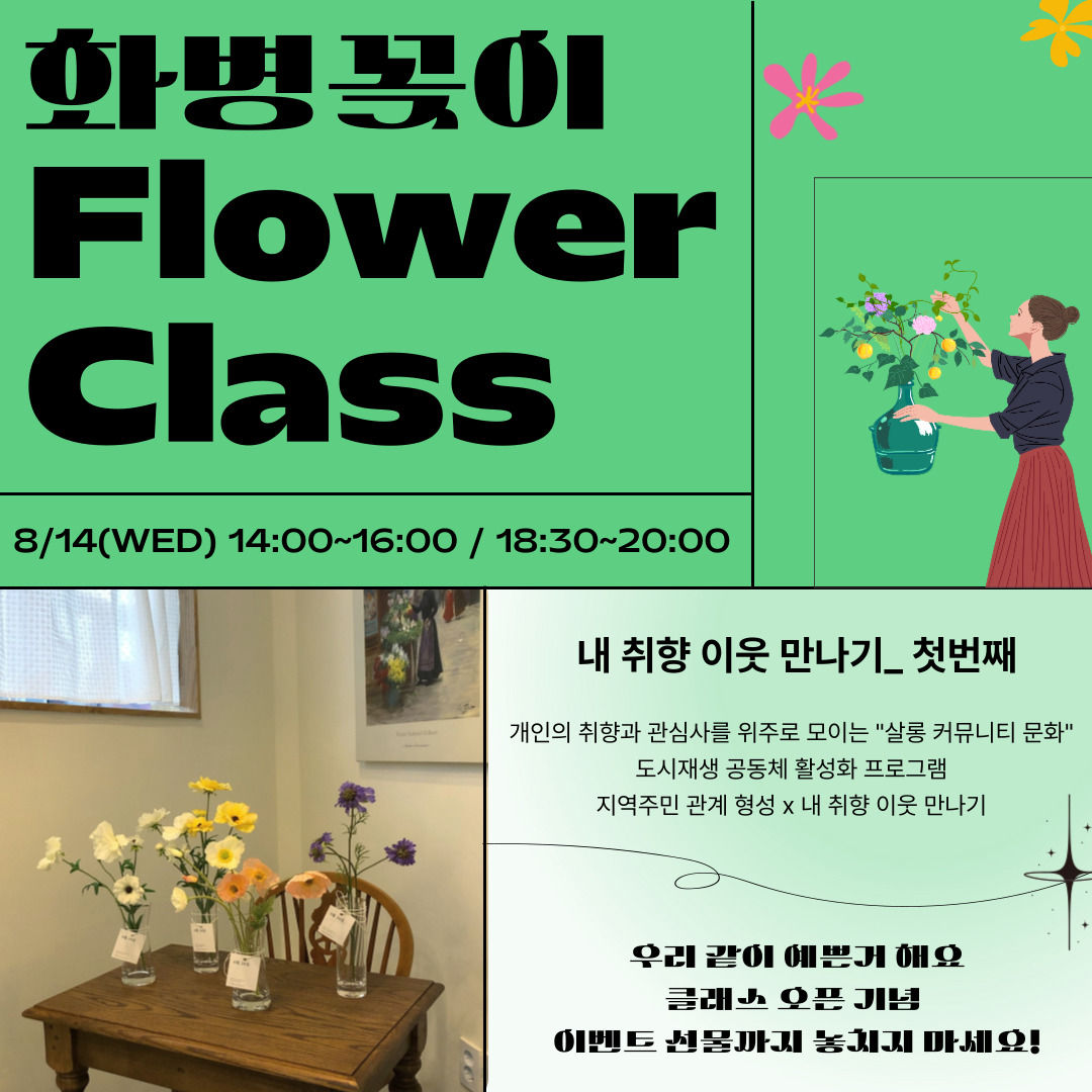 · 모집신청은 8/5(월) 10:00 화병꽂이 클래스 신청을 시작으로 매주 회차별 전주 월요일 공지사항 링크 오픈됩니다.