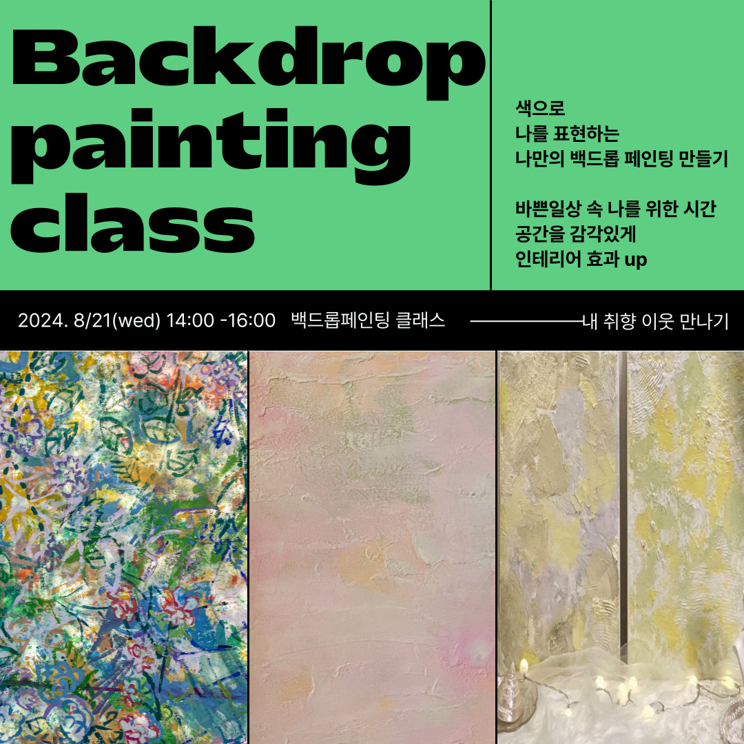 | [공지] 도시재생살롱 - 백드롭페인팅 클래스 참여 확정공지(마감) (0) | 2024.08.09 |
