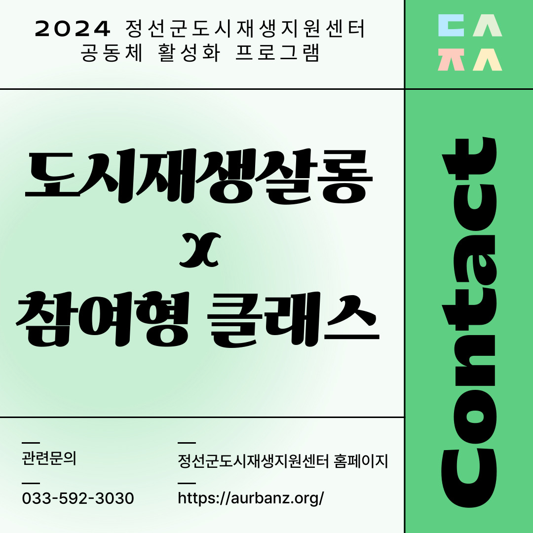 · 도시재생살롱 참여형 클래스는 정선군도시재생지원센터 홈페이지를 통해서만 신청 가능합니다.