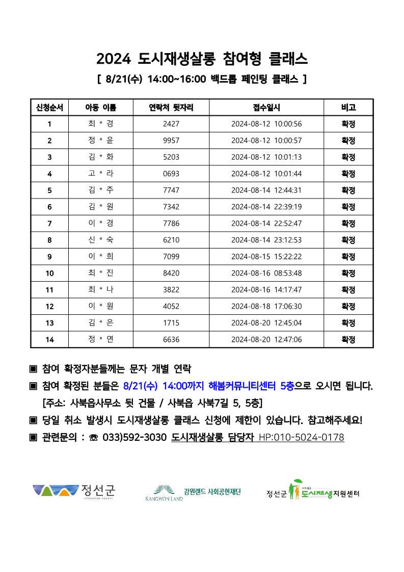 2) 모집 마감 완료 후 개인별 문자 안내 및 신청순서 확정여부 해당 페이지 공지됨