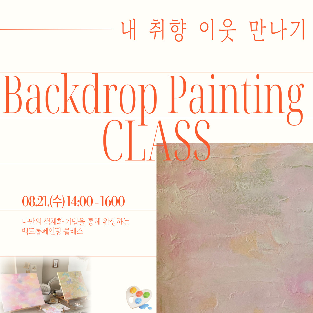 8/21(수) 14:00~16:00 백드롭 페인팅 클래스 ⇨ https://naver.me/FA25vB5D