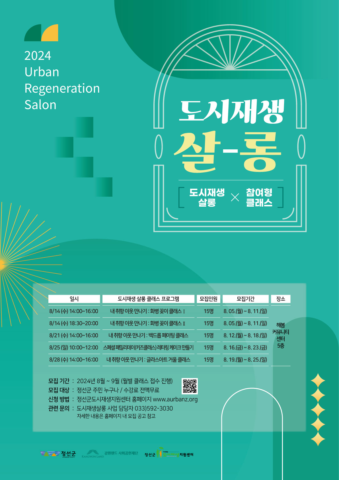 | [공지] 2024 도시재생살롱 - 참여형 클래스 참여자 모집 (0) | 2024.08.01 |