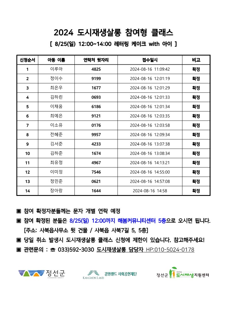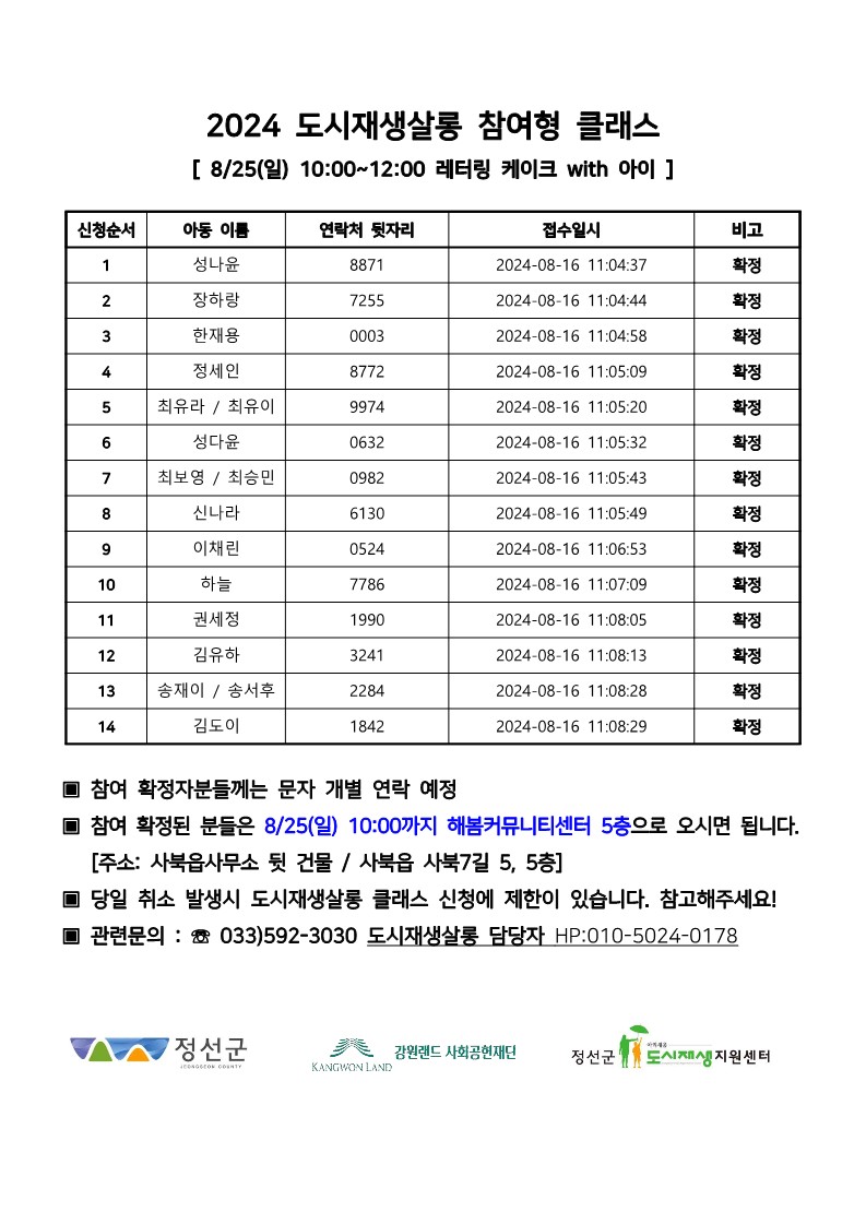 8/25(일) 레터링케이크 만들기 클래스 모집이 마감되었습니다. 참여 확정자 아래 리스트 확인해주세요!