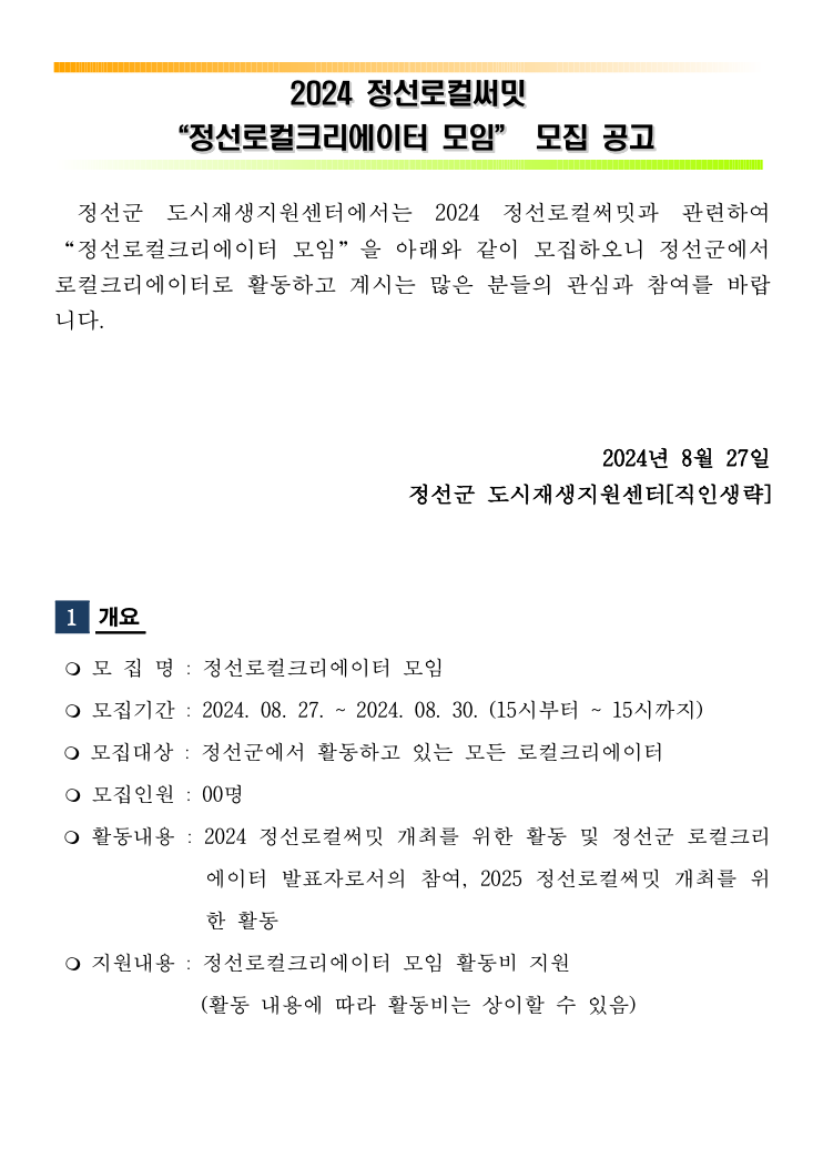 | [공지] 도시재생살롱 - 키즈 클래스 마감 (확정공지) (0) | 2024.08.30 |