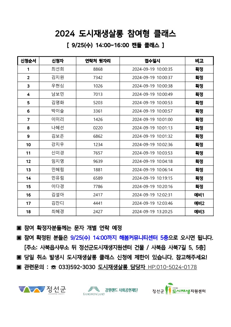※ 공지내용 확인 필수! 접수시 연락처 입력 오타 등의 문제로 문자 미수신 사례가 발생하고 있으니