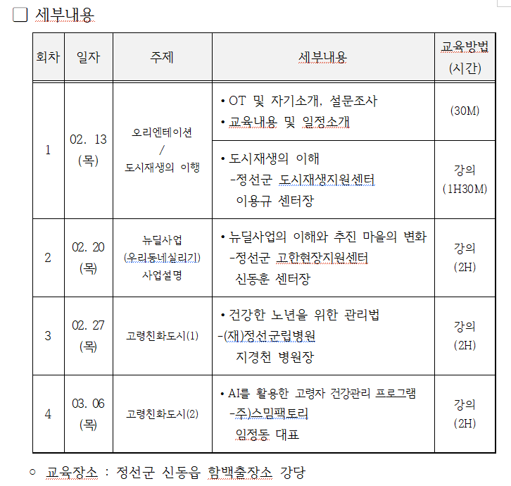▷ 교육장소 : 신동읍 함백 출장소(변경가능)