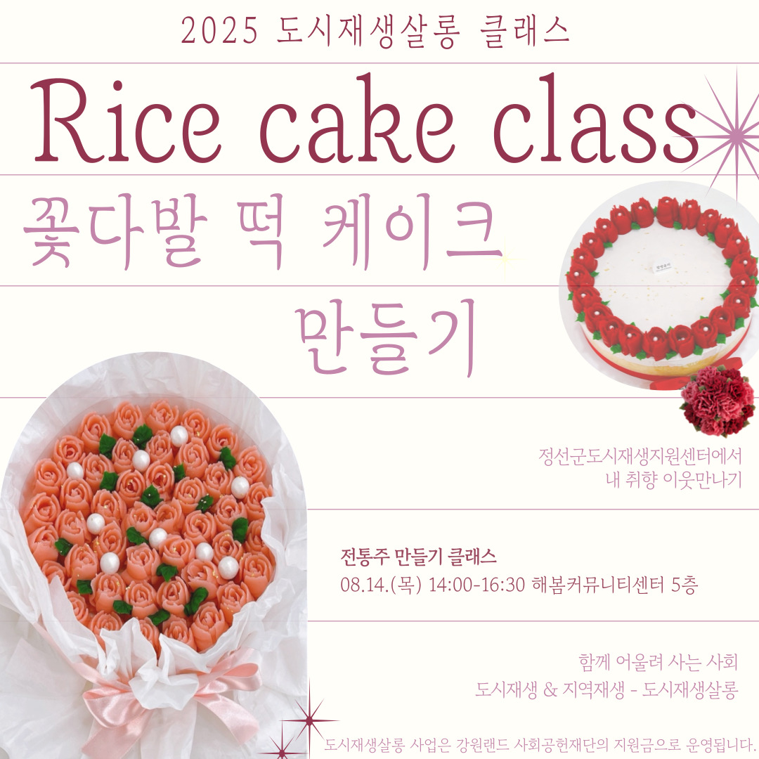 8/14(목) 14:00~16:30 꽃다발 떡 케이크 만들기 클래스 신청 ⇨ 모 집 마 감