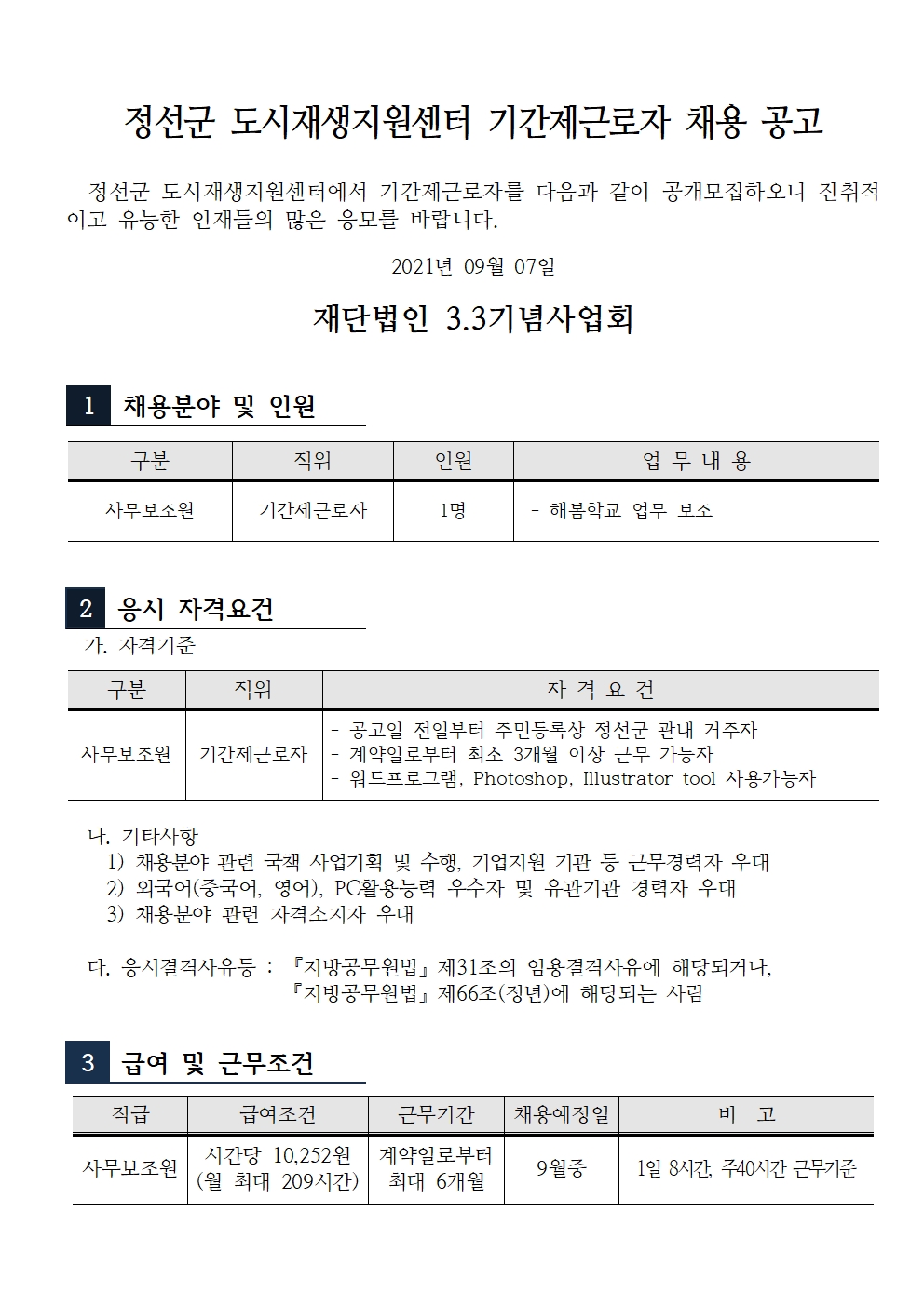 | 관련자료1 : 정선군 도시재생지원센터 응시원서_210906.hwp |