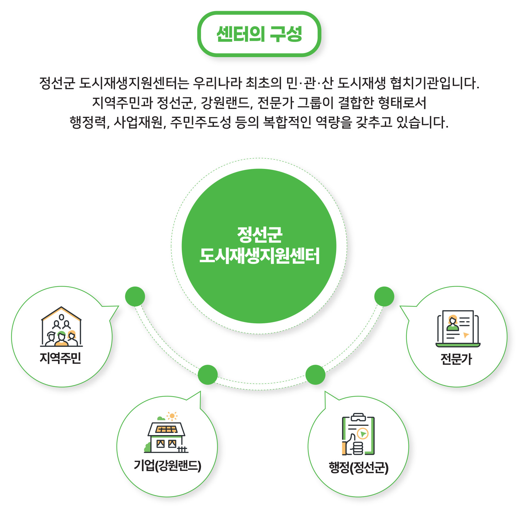 정선군 도시재생지원센터는 그 미래를 주민과 함께 만드는 곳입니다.